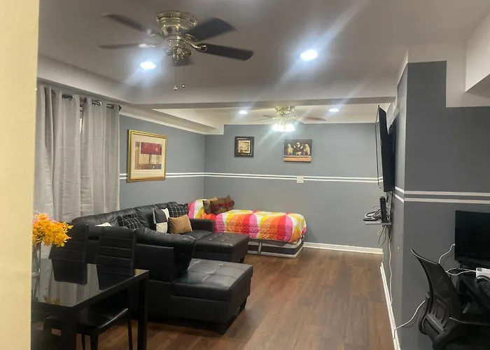Das 1-Zimmer-Granville Appartment in Chicago liegt 20 km vom Flughafen O’Hare International entfernt. Dieses 74 m² große Apartment bietet Blick auf den Garten und gewährleistet die Sicherheit seiner Gäste durch einen Safe.